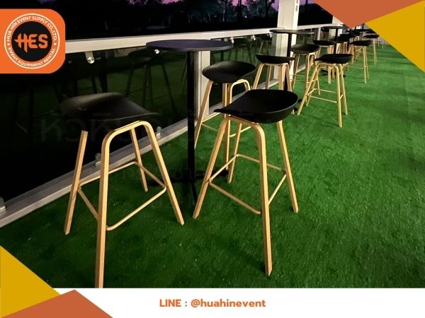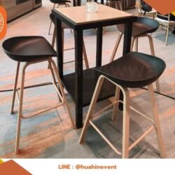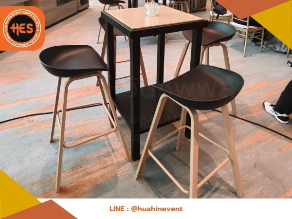 เช่าเก้าอี้บาร์สูงเบาะสีดำ ขาเหล็กลายไม้