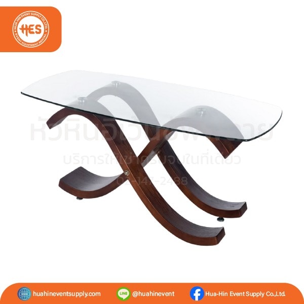โต๊ะกลางกระจกนิรภัย ขาไม้