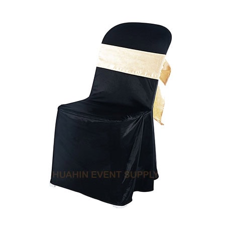 เช่าเก้าอี้พลาสติกคลุมผ้าดำโบว์ทอง