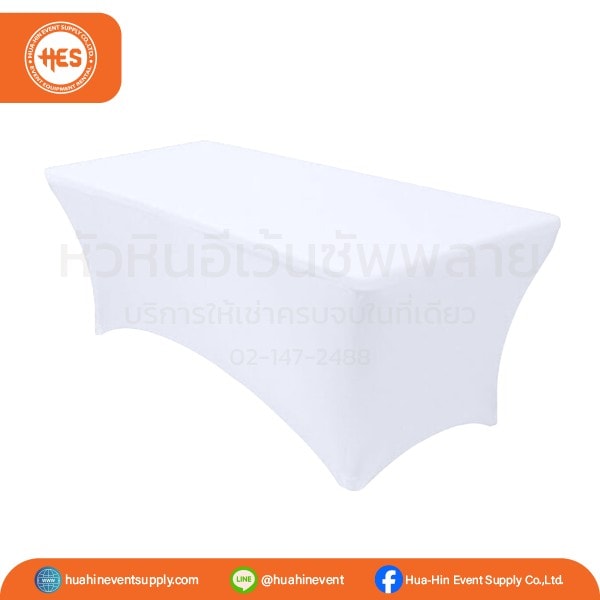 เช่าโต๊ะหน้าขาวคลุมผ้าขาวตึงเข้ารูป 1.8×0.45