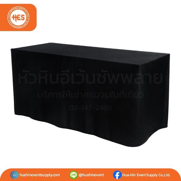 เช่าโต๊ะหน้าขาวคลุมผ้าดำ 1.8×0.45
